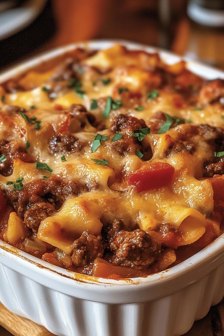 This Beef Lombardi is a hearty casserole with ground beef, egg noodles, cream cheese, tomatoes and tons of flavor!!!