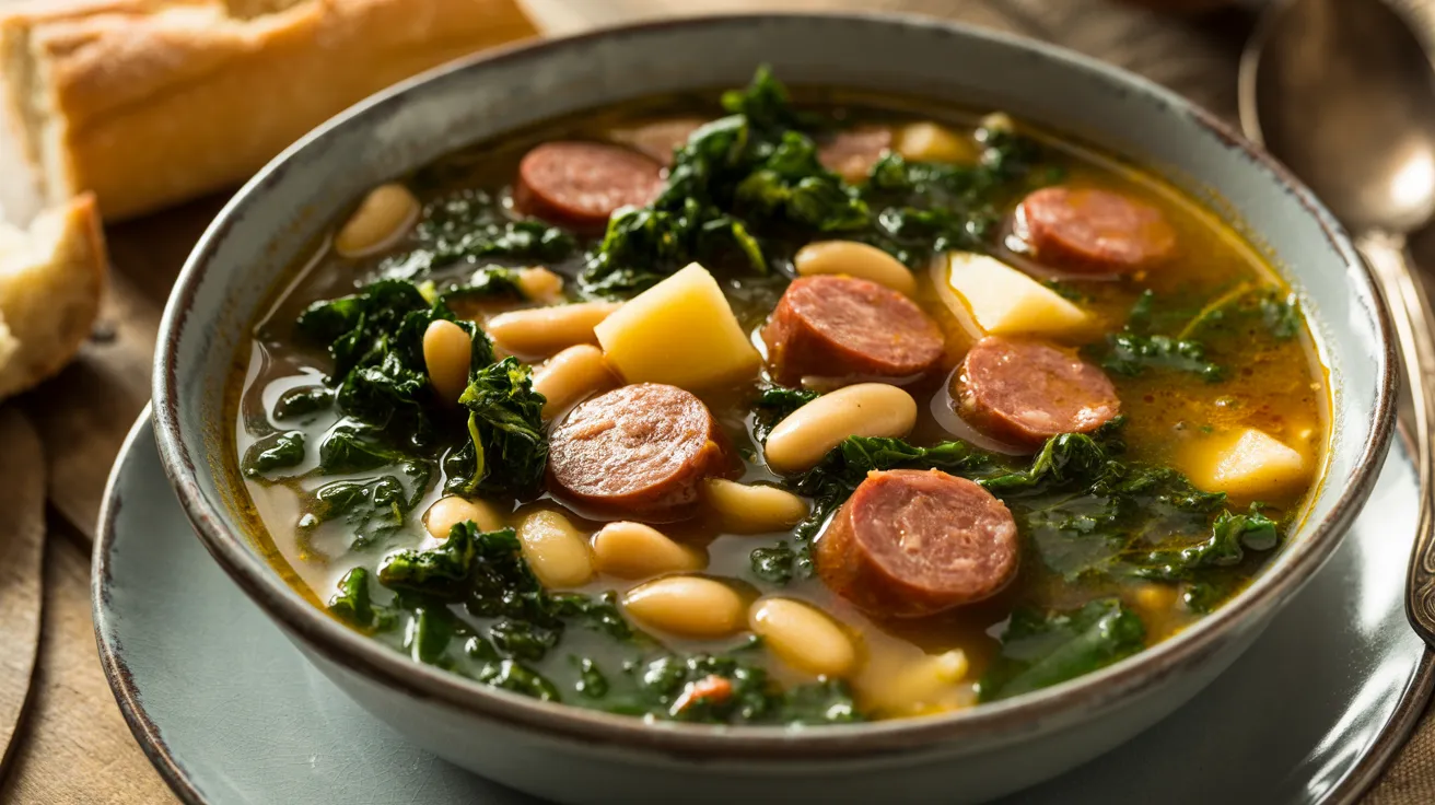 This best Portuguese kale soup brings traditional flavors from Portugal’s countryside straight to your table with smoky linguiça, tender kale, and creamy potatoes. Our authentic best Portuguese kale soup recipe creates a hearty, soul-warming meal that serves four people and takes just 45 minutes from start to finish.