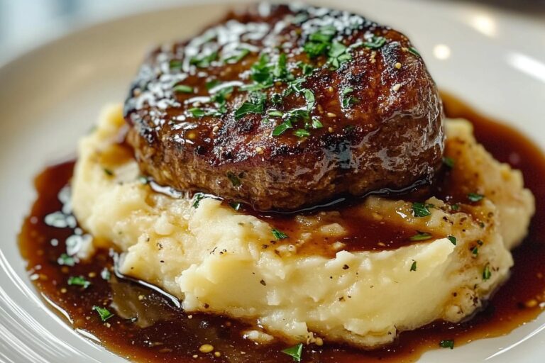Here’s a delicious recipe for Classic Homestyle Salisbury Steak with Creamy Garlic Infused Mashed Potatoes. This comforting dish combines juicy Salisbury steaks with a rich gravy and creamy garlic mashed potatoes, making for a hearty and satisfying meal.
