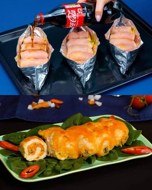- Serve the Coca-Cola glazed chicken alongside the cheesy stuffed mushrooms. Garnish with more parsley if desired, and enjoy the combination of sweet, savory, and spicy flavors.