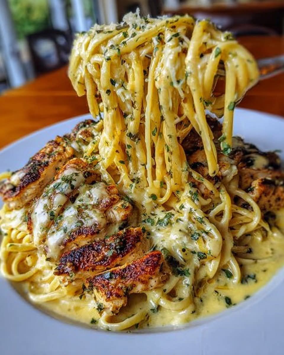 Juicy Cajun-spiced chicken breasts are seared to perfection and served over a bed of linguine tossed in a luscious garlic-Parmesan cream sauce. Every bite packs a punch of smoky heat and buttery richness — a perfect balance of bold and comforting.