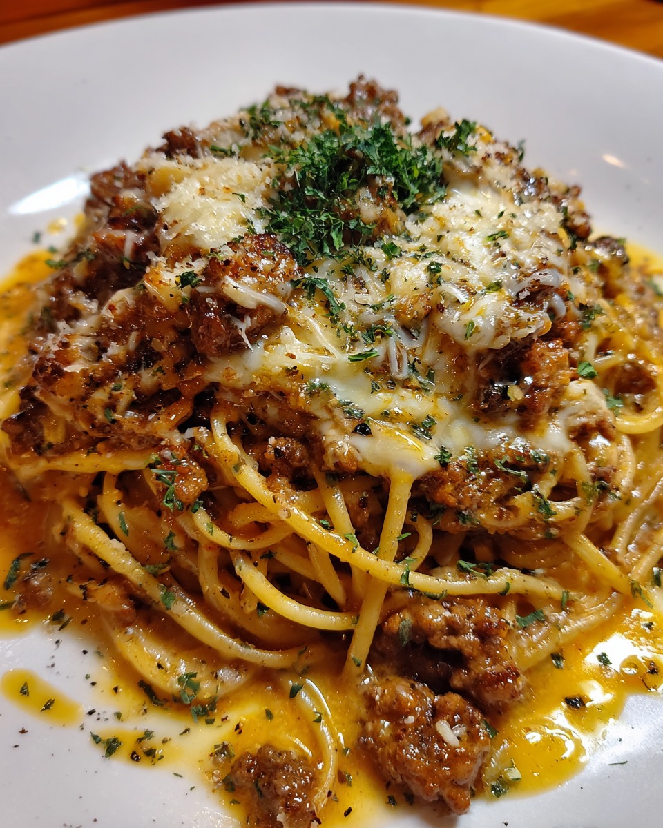 When you think of the ultimate comfort food, pasta always comes to mind. But imagine twirling tender spaghetti coated in a silky garlic butter cream sauce, topped with juicy strips of seared beef, and finished with a generous shower of Parmesan cheese. That’s exactly what this dish delivers — a luxurious yet simple meal that turns any dinner into something special.
