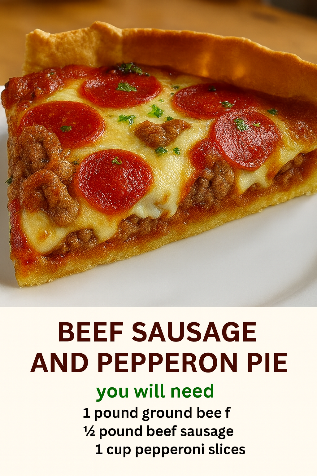 If you love pizza, lasagna, or cheesy casseroles, then this Deep Hamburger Beef Sausage & Pepperoni Pie will become your new obsession. Think layers of savory ground beef, Italian sausage, pepperoni, gooey melted cheese, and a golden crust that holds it all together. It’s like the best of a pizza and a meat pie rolled into one — rich, hearty, and satisfying enough to feed a hungry crowd.