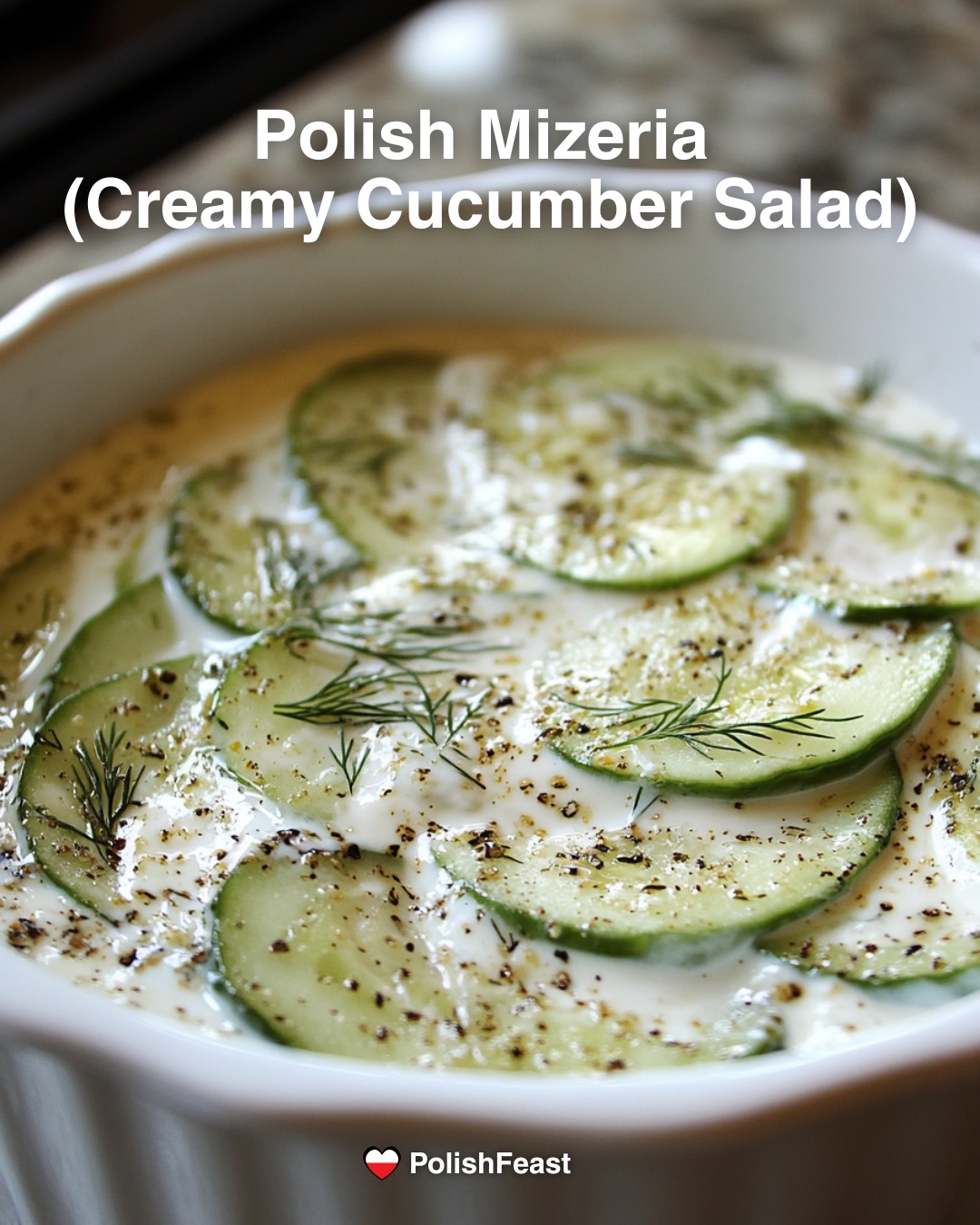 Mizeria is a traditional Polish cucumber salad made with thinly sliced cucumbers tossed in a tangy, creamy dressing. Light, cooling, and subtly sweet, it’s a fantastic side dish for grilled meats, schnitzel, or summer BBQs.