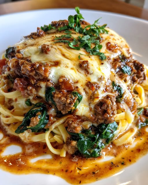 Garlic Butter Linguine with Cheesy Beef and Italian Sausage