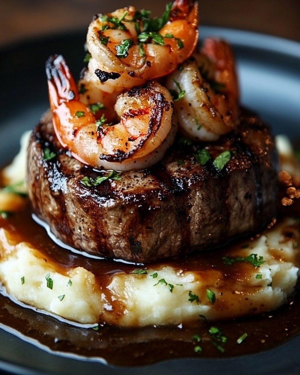 Grilled Ribeye Steak with Spicy Sautéed Shrimp, Roasted Asparagus, Mashed Potatoes & Buttery Biscuit