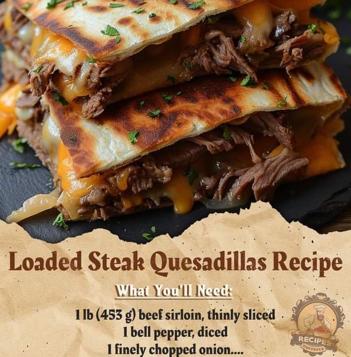 6. Serve: Plate the quesadilla slices and serve them hot, optionally with salsa, guacamole, or sour cream on the side. Enjoy your loaded steak quesadillas!