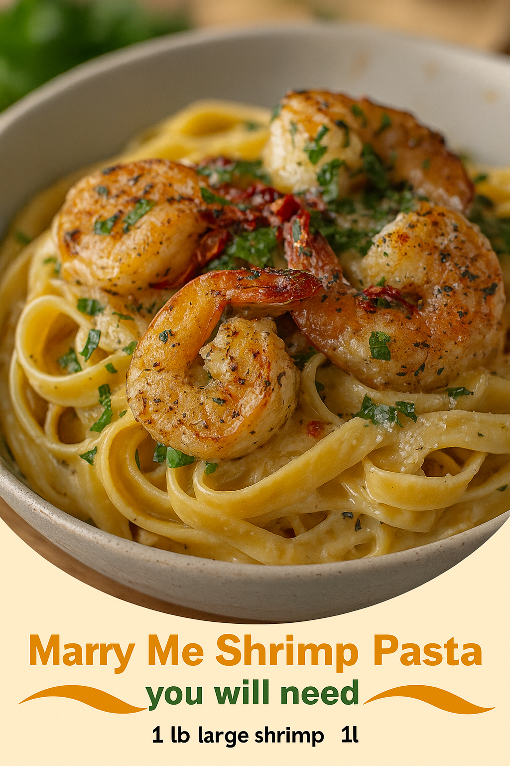 Got it! The Marry Me Shrimp Pasta is a luxurious, creamy, and flavor-packed dish that lives up to its romantic name. It’s the seafood spin on the viral “Marry Me Chicken,” full of garlic, sun-dried tomatoes, parmesan, and shrimp tossed with tender pasta. Perfect for date nights, family dinners, or when you want to impress without too much fuss.