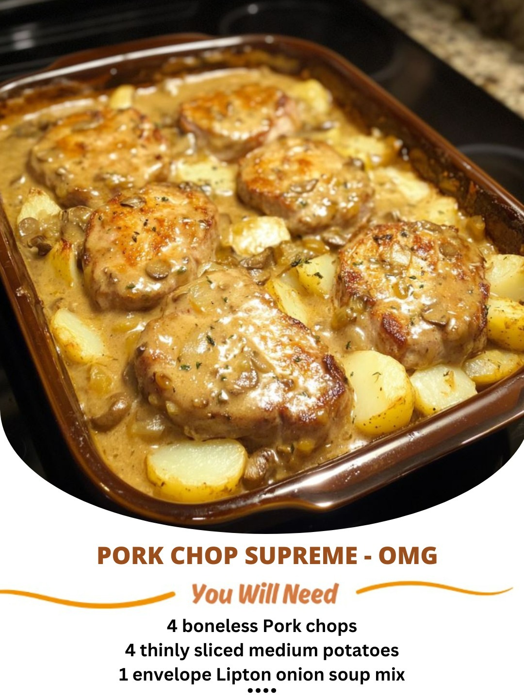 This Pork Chop Supreme is a restaurant-worthy dish that’s loaded with flavor—tender, pan-seared pork chops smothered in a creamy mushroom, onion, and cheese sauce. It’s comfort food at its finest, perfect for a quick weeknight dinner or a special occasion!