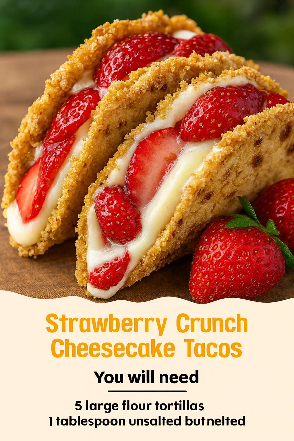 Perfect choice! These Strawberry Crunch Cheesecake Tacos are a playful, jaw-dropping dessert mashup that combines crispy taco shells, creamy cheesecake filling, and the nostalgic crunch topping everyone loves from Strawberry Shortcake ice cream bars. They’re colorful, creamy, and crunchy all in one bite—a guaranteed crowd-pleaser.